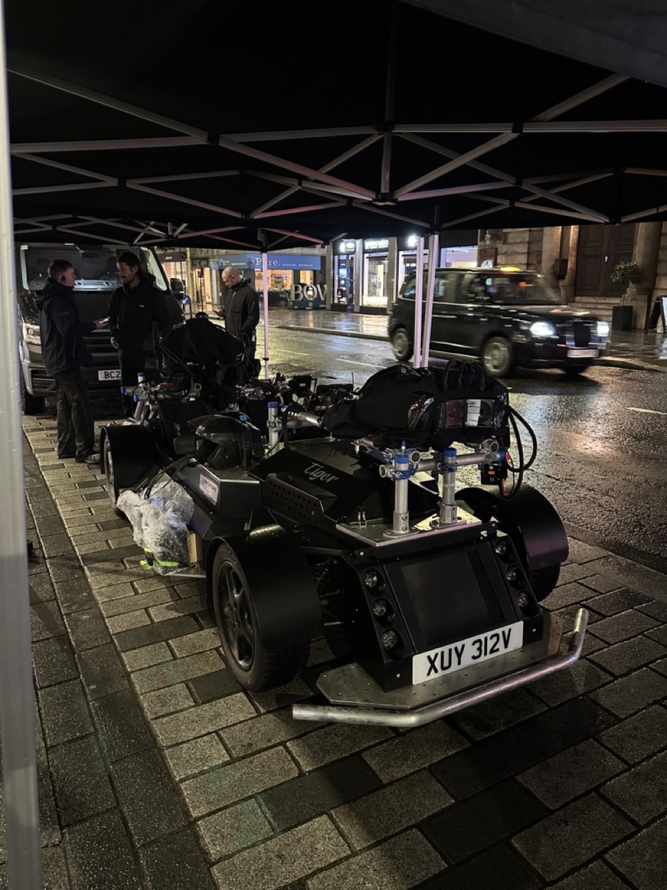The Tiger Elite Tracking Car are capable of reaching speeds of up to 130 mph, making it perfect for high-speed filming and fully remote camera operation. Purpose-built for high-speed chase sequences, it can outperform and out-handle most high-performance saloon cars (200 BHP / 550 kg). Compact and highly manoeuvrable, it delivers rapid acceleration and is fully equipped with scaffolding and our unique rigging plate, allowing for a wide range of camera rig configurations.